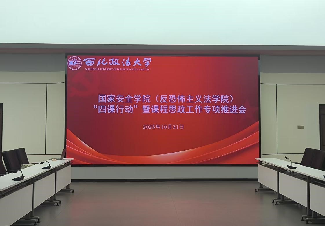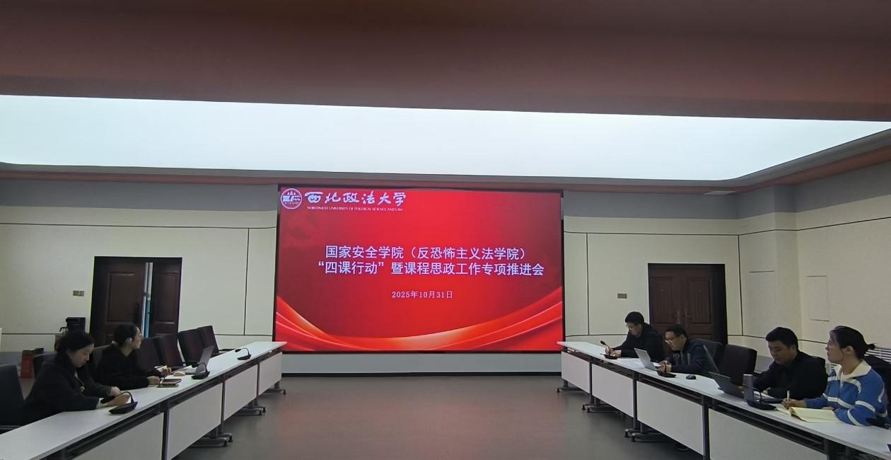 为进一步强化“三风”,提高“三率”,十大博彩平台 于10月31日在十大博彩平台 可视化中心开展“四课行动”暨课程思政工作专项推进会。十大博彩平台 党委副书记、副院长刘卫波、院长助理、国家安全战略(中华民族共同体)教研室主任段阳伟、国家安全思想与理论(国家安全法)教研室主任李明、国家安全治理(反恐怖主义法)教研室主任马瑜、教务秘书秦哲、本科年级辅导员张婕妮参加本次会议。会议由院长助理段阳伟主持。