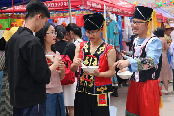 维吾尔族的手抓饭,壮族的豆腐圆,蒙古族的奶干,壮族的竹竿舞,汉族的茶道……民族文化一条街共展示了各民族独具特色的美食、服饰、舞蹈和体育活动。吃着民族美食,逛着民族文化街,玩着民族游戏,跳着民族舞蹈,各民族同学在相互了解中彼此增进感情,在相互学习中增强民族文化认同和民族融合。