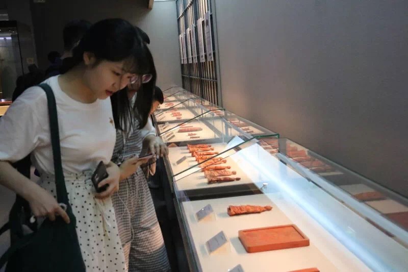 教育息息相关的文物文献,反映了中国社会从秦汉时期直到新中国成立以后的教育发展情况。同学们在参观了这些古籍文献之后,对中国的教育史有了更全面,更直观的理解。妇女文化展馆分为五个部分,从“她的故事”到“中华嫁衣”,中国妇女在不同历史时期的生活方式与情感世界呈现在了我们眼前,是中国历史上妇女文化随时代变迁的一种体现。书画艺术展馆展示了几千年来,中国文人对于书画艺术的追求。文人通过作画写诗的方式对自己的理想加以抒发,对自己的人格加以阐述。这里收藏着大量清代,民国,近现代等时期的作品,甚至存有明宋之前的文化遗迹,楷草隶篆四体书法作品均有展现。