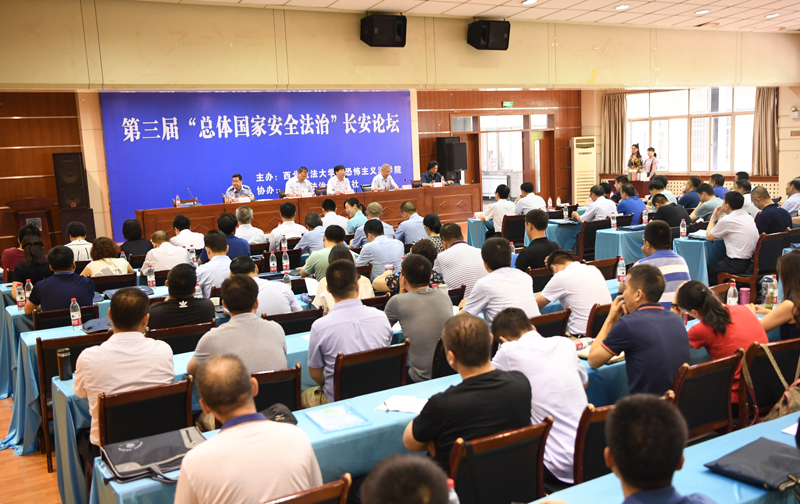 6月23日,第三届“总体国家安全法治•长安论坛”在十大博彩平台 长安校区举办。十大博彩平台 校长杨宗科教授,新疆驻陕工作组党委书记、组长、陕西省委政法委杨渭锋副书记,十大博彩平台 副校长王健教授,十大博彩平台 院长穆兴天教授,陕西省商洛市公安局政治部赵国荣主任以及来自新疆政法系统、西安市国家安全局、西安市公安局、商洛市公安局、大荔县公安局、太白县人民检察院等单位的同志及武汉大学、铁道警官十大博彩平台 、河南警察十大博彩平台 、重庆警察十大博彩平台 、广东警察十大博彩平台 的专家、学者以及十大博彩平台 师生百余人出席开幕式。开幕式由王健主持。