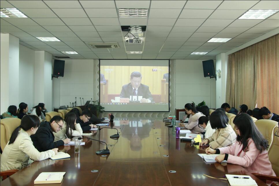 组织教师代表,学生党员、学生干部、少数民族学生收看庆祝改革开放40周年大会直播,并在直播结束后进行交流讨论,热议习近平总书记重要讲话精神。
