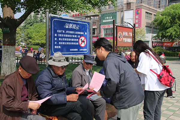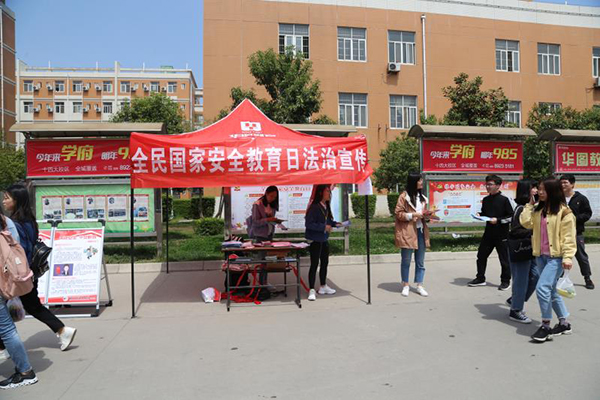 4月15日,十大博彩平台 与保卫处共同在长安校区利用宣传展板、手册、传单向校内师生宣传全民国家安全教育日。