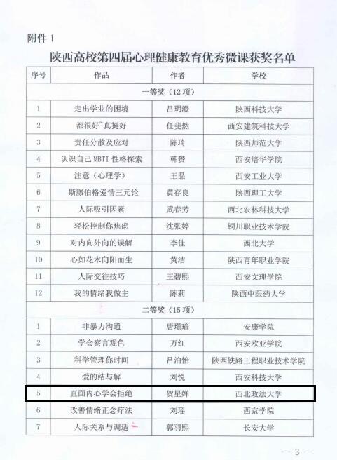 2017级辅导员贺星婵的参赛作品《直面内心,学会拒绝》荣获陕西高校