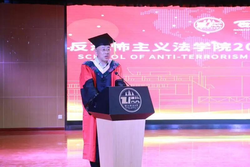 我在这里的祝贺,至少想表达这样几个含义,首先,它意味着我们经过四年的学习,完成了学业上全部规定的基本动作。在这个过程当中,同学们不仅仅是进入到同样的食堂就餐,使用了同样的宿舍、图书馆和体育场以及连接它们的大路小径,更重要的是,还修炼了同样的课程,阅读了同样的教材以及各种类似读物,共同分享了许多不同的老师的思想和语言,对于法学各门专业课,对于民族区域自治法、反恐怖主义法、网络技术与网络安全法、世界恐怖活动历史与现状、宗教事务法治化管理、极端主义概论、反恐与金融犯罪、国际反恐与合作、反恐怖大数据情报分析等等课程,都获得了最接近一致的认知和理解。在四年的生活经历过程当中,我们因此有了大致类似的价值观、判断力和审美标准,有了类似的知识体系和基本一样的应用能力,进而造就了我们相同的气质和品格,我们因此在知识和能力上获得了新生或者说是升华,成为一个“新民”。这是我想和大家分享对于毕业这个概念含义的一个重要内容。为了获得今天这样一个结果,同学们务必牢记,除了你们自己个人的努力付出之外,另外还要记得把你们从小到大培养成人,到今天仍在支持你们前行的最近的亲人,你们的父母,你们的亲友,还有各个阶段的同学,在物质上、精神上提供的各种各样形式帮助的人,包括我们在校园里所享受的各种服务,比如说图书馆的管理员,比如说后勤、水电甚至还有楼管等等,有很多人在为你们服务,这些都是值得我们感谢和感恩的。这是第一个,祝贺你们毕业。