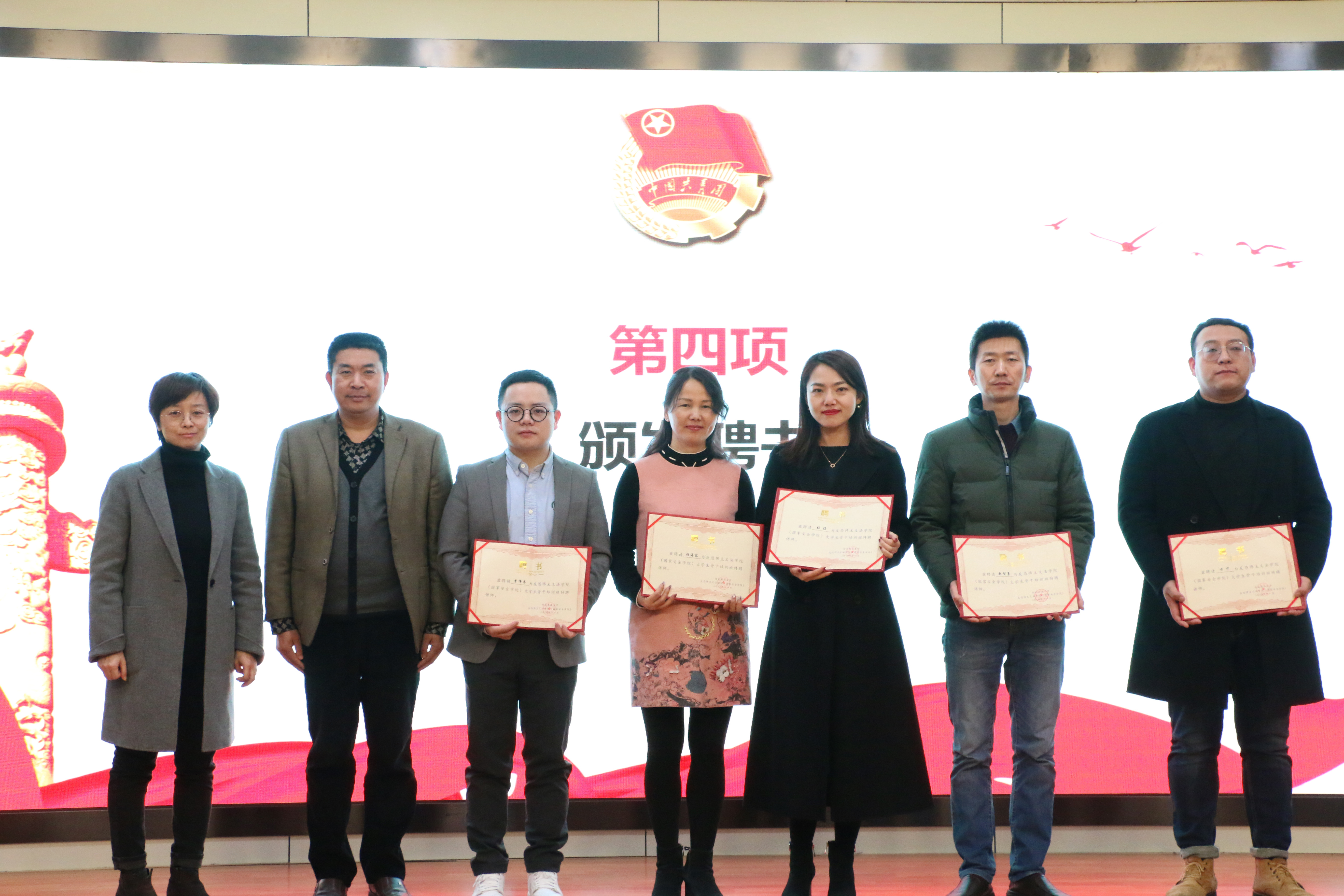 党委书记李政敏为获聘的五位老师颁发聘书。