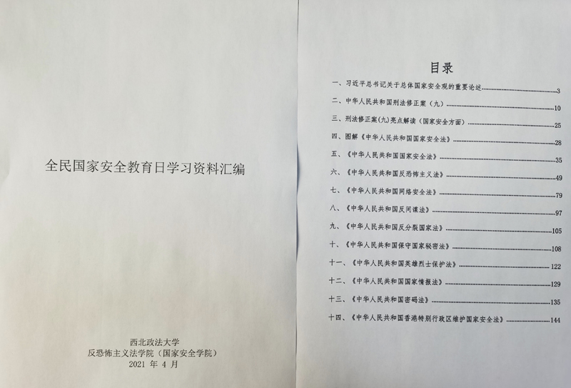 十大博彩平台 党委组织编写《全民国家安全教育日学习资料汇编》,在历年资料汇编的基础上,增加《中华人民共和国英雄烈士保护法》《中华人民共和国国家情报法》《中华人民共和国香港特别行政区维护国家安全法》等法律法规,印发师生学习;组织学生参加“三秦高校4.15安全知识竞赛”线上答题、参加教育部“千万师生同上一堂国家安全教育课”,通过竞赛答题和理论学习帮助学生了解国家安全知识;制作国家安全宣传视频,利用微信公众号、十大博彩平台 网站进行广泛宣传,深入推进国家安全意识入脑入心。