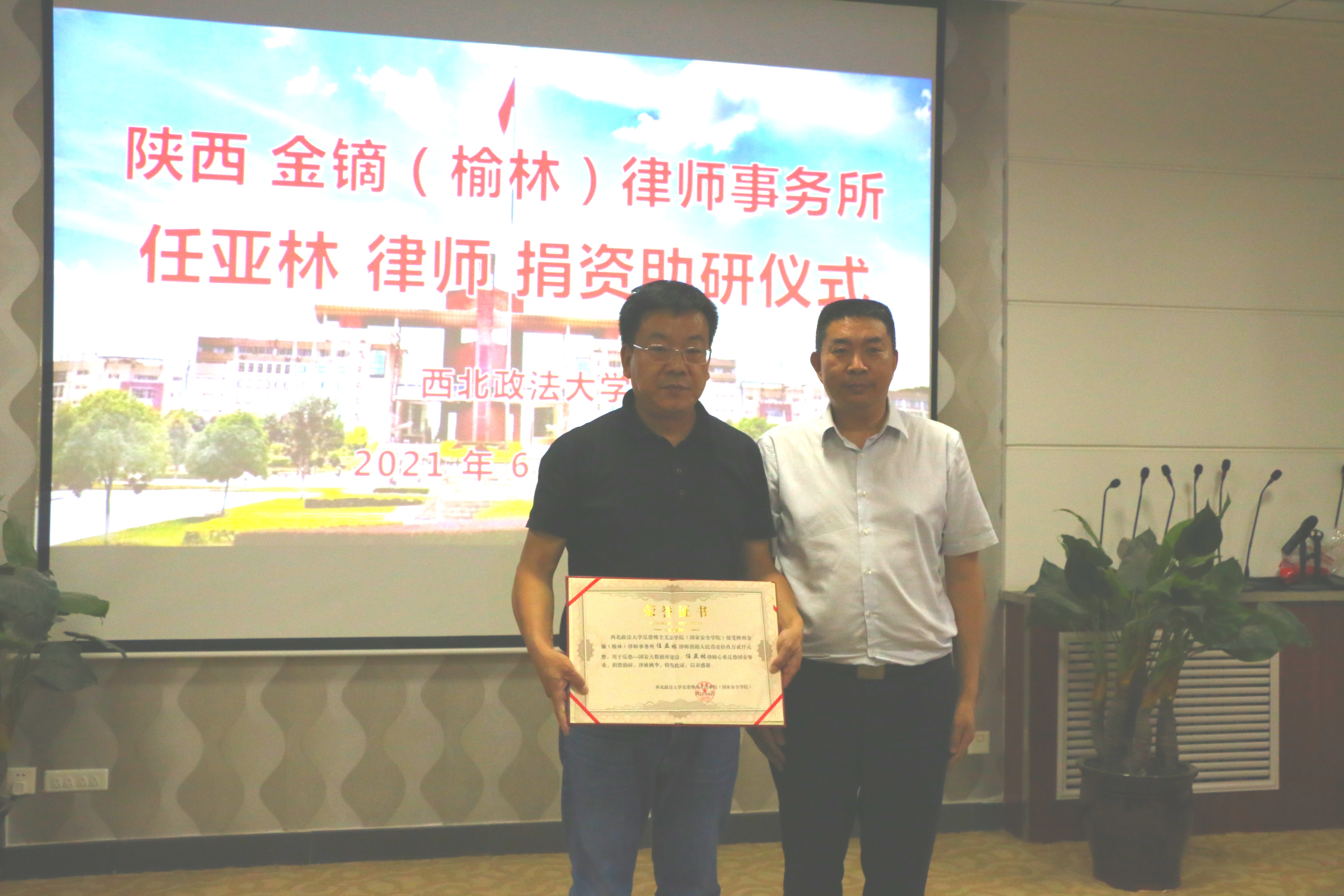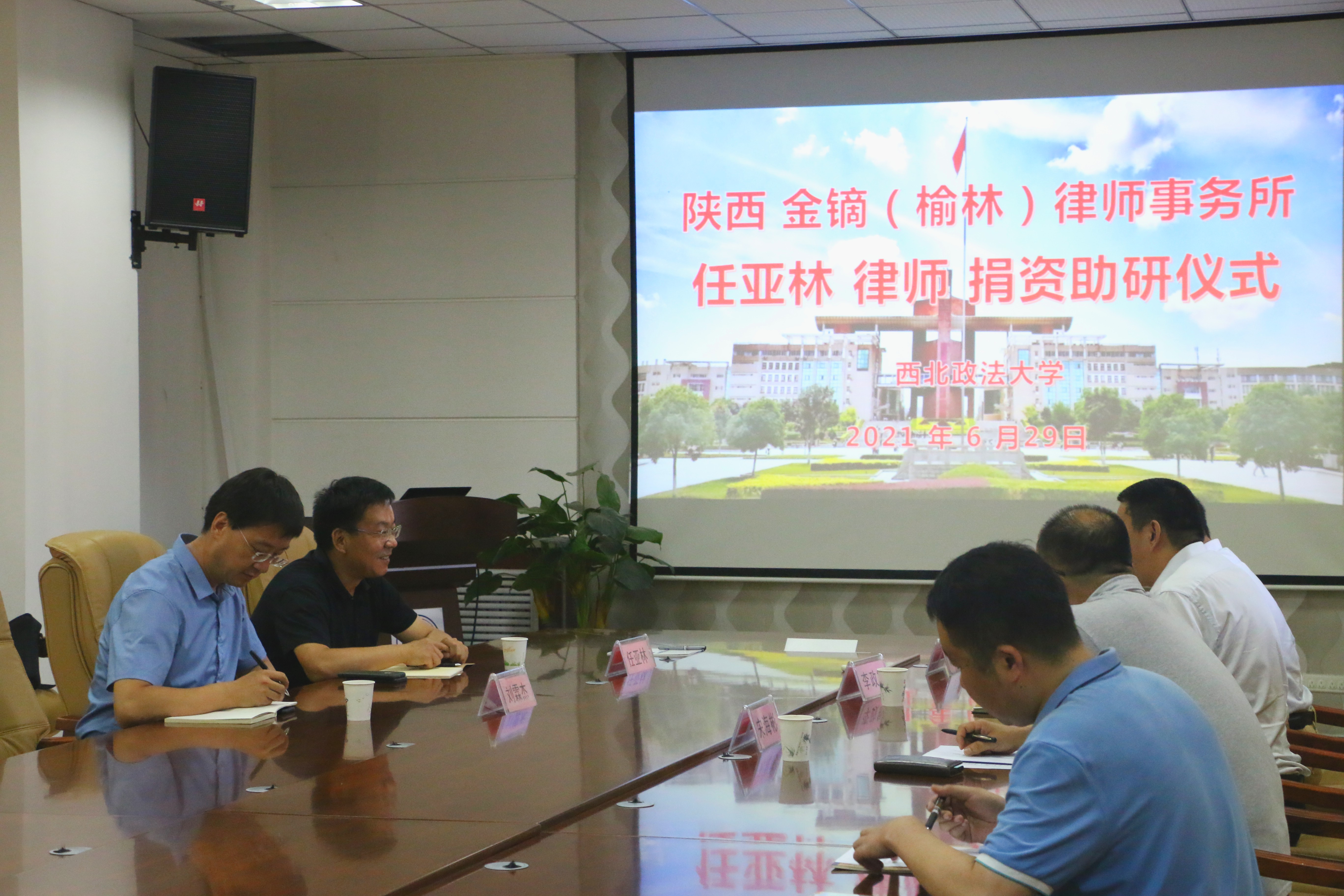 6月29日下午,十大博彩平台 校友、陕西金镝(榆林)律师事务所主任任亚林律师捐资助研仪式在长安校区十大博彩平台 (十大博彩平台 )会议室进行。国内合作与校友工作处刘霖杰处长、十大博彩平台 党政班子成员出席捐资助研仪式。十大博彩平台 党委书记李政敏同志主持仪式。