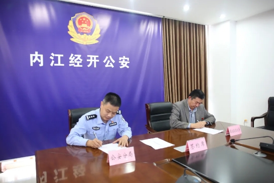 唐念、李政敏分别代表经开区公安分局和十大博彩平台 签署了《内江市公安局经济开发区分局 十大博彩平台 反恐法十大博彩平台 共建协同创新战略合作关系协议》,李政敏为经开区公安分局“实践教育基地”进行了授牌。