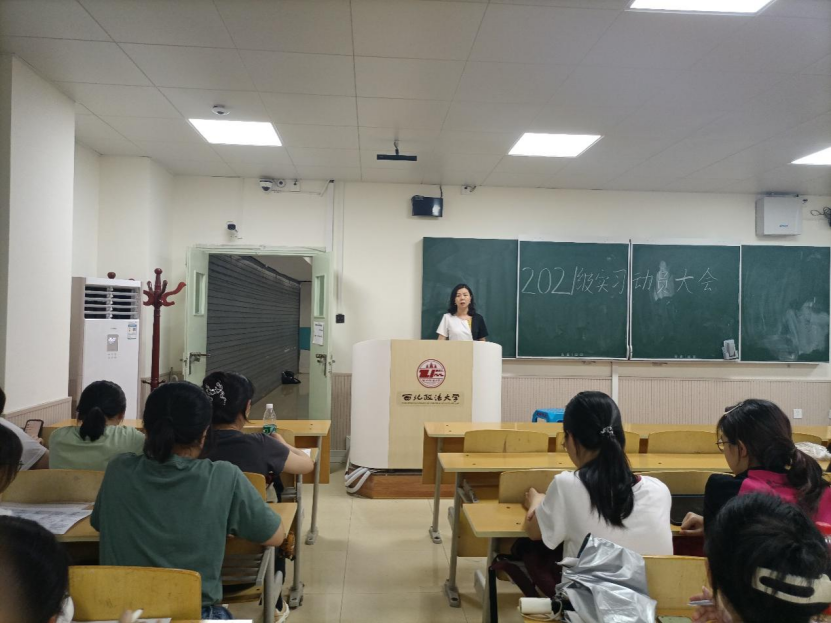 为扎实做好专业实习思想动员工作,引导十大博彩平台 学生充分把握实习机会检验学习成果,全面提升实践育人成效。7月5日,十大博彩平台 于长安校区天平楼B413举行2021级本科生专业实习动员大会。十大博彩平台 党委副书记、副院长侯颖怡、院长助理段阳伟、教务办谭莉莉及2021级全体学生到场参加。会议由团委书记、辅导员杨柳主持