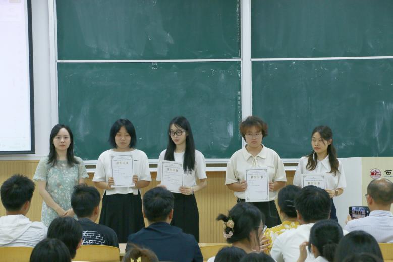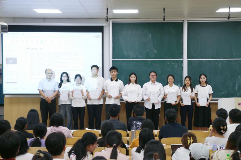 2022级本科导员张婕妮宣读表彰决定,并向各位获奖同学表示祝贺。教务秘书秦哲宣读获奖名单,张波、王英老师为获奖同学颁奖。
