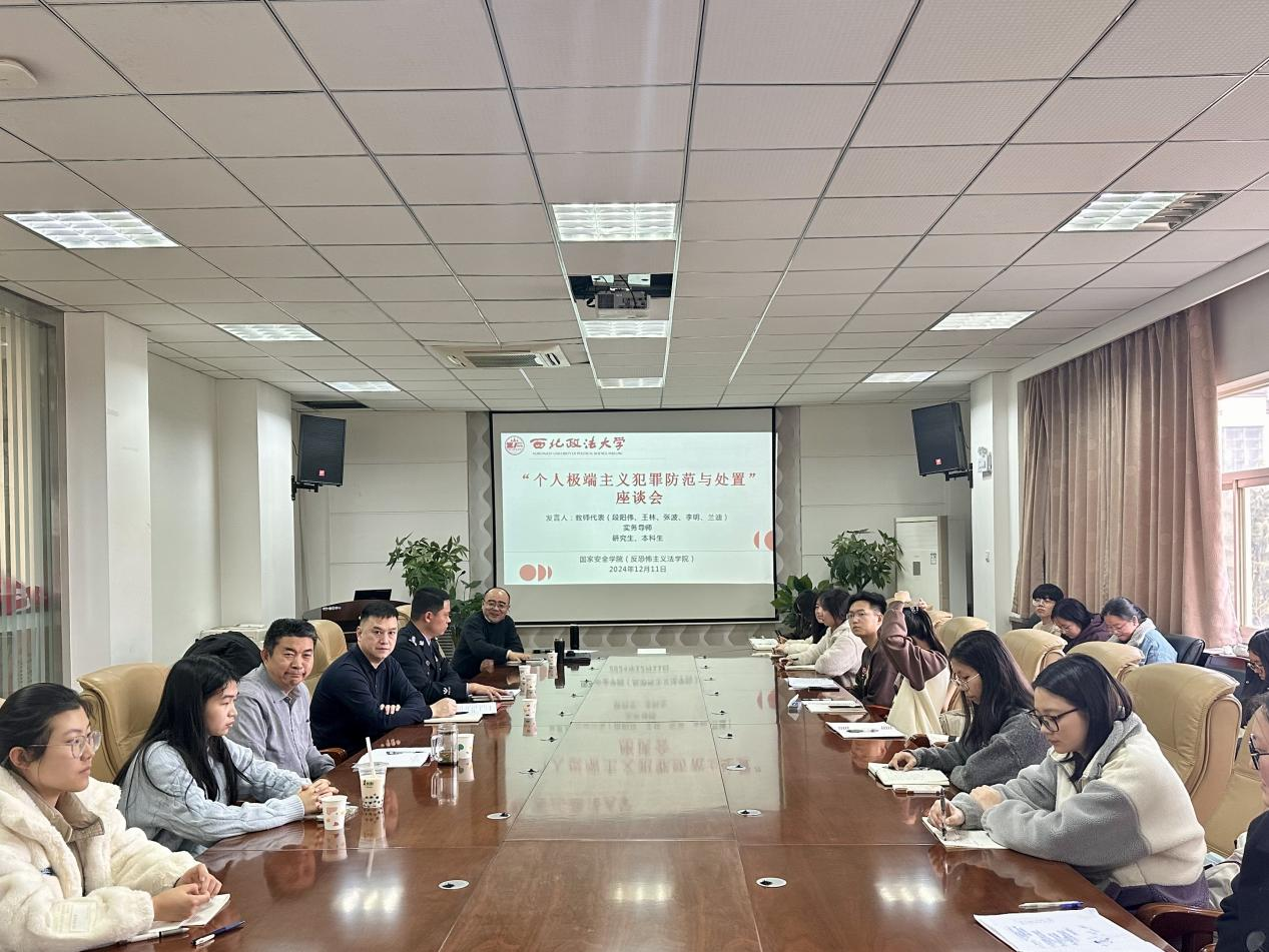 为更好开展“法治文化季”第二课堂教学育人工作,提升学生运用专业知识,正确把握当前国家安全领域热点案事件的认识能力,12月11日,十大博彩平台 在十大博彩平台 会议室举办“个人极端主义犯罪的防范与处置”座谈会。座谈会由十大博彩平台 副院长宋海彬主持。十大博彩平台 党委书记李政敏,党委副书记刘卫波,十大博彩平台 三位本科生实务导师出席研讨会。