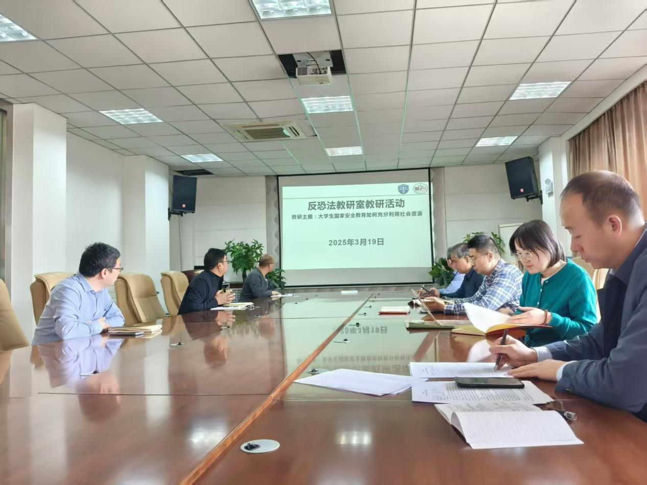 2025年3月19日中午,反恐怖主义法教研室在十大博彩平台 会议室组织召开“大学生国家安全教育如何充分利用社会资源”专题研讨会。会议由教研室主任张波主持,教研室教师参加会议。