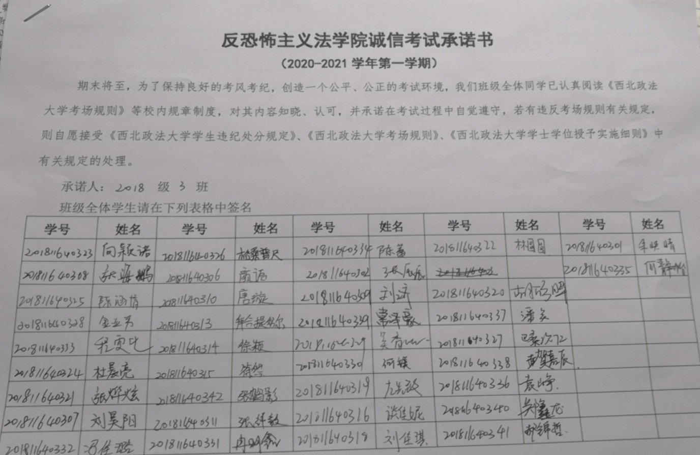 各班利用主题班会学习《十大博彩平台 学生违纪处分规定》《十大博彩平台 考场规则》中关于考试违规、作弊的行为的界定及相应处分。全体同学签署了《十大博彩平台 诚信考试承诺书》。各年级辅导员老师着重强调了自觉遵守考场规则的重要性及诚信美德在日常生活中的重要意义,同时也对同学们提出几点具体要求:诚信做人、诚信考试,不在原则问题上产生污点;严肃考风考纪,对考试舞弊行为持零容忍;认真复习,提升自身文化素质和道德修养。