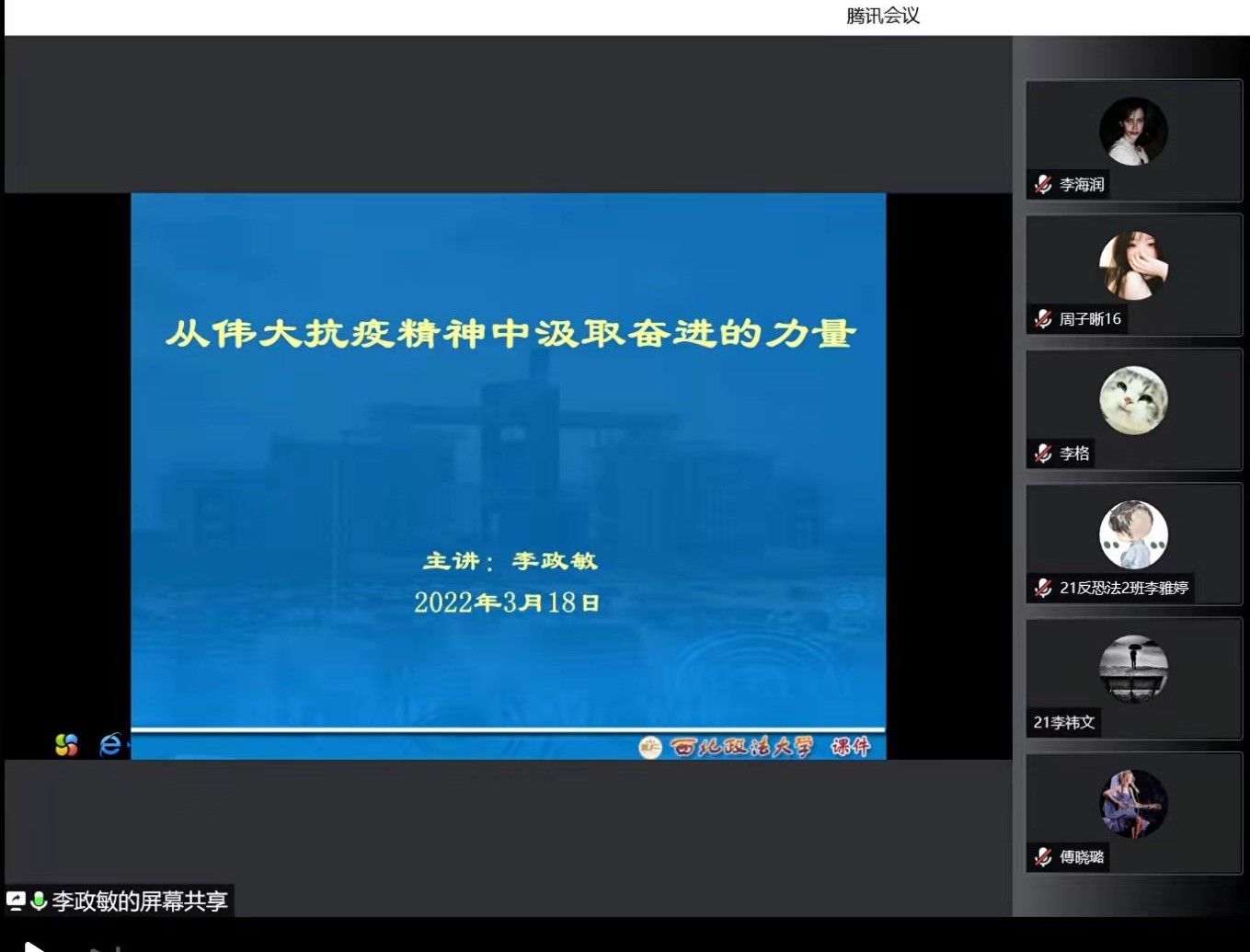 为深入贯彻习近平总书记关于“大思政课”建设的重要指示精神,切实推进将抗疫精神融入思政教育的工作要求,提高学生思想政治觉悟,增强学生社会责任感和使命感,2022年春季学期初,十大博彩平台 (十大博彩平台 )以线上教学形式积极开展春季思政第一课。
