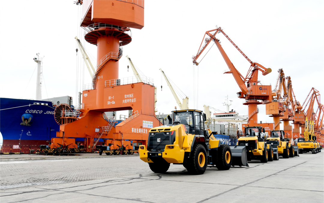 在广西壮族自治区钦州港整车待出口的柳工工程机械产品(图片来源:当代广西微信公众号)