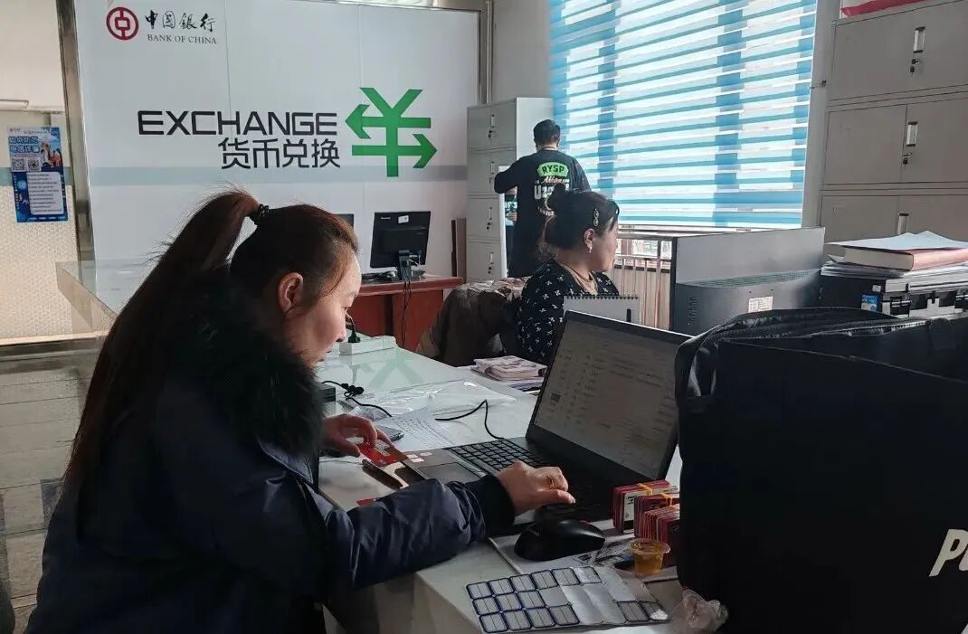 新疆维吾尔自治区塔城市常鸿种养殖农民专业合作社会计正在为合作社边民办理结算手续(图片来源:塔城地区融媒体中心)