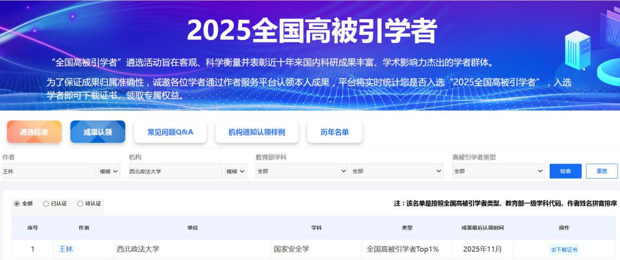 近日,中国知网下属的中国科学文献计量评价研究中心(出版智库)发布“2025全国高被引学者”榜单。舒洪水教授和王林副教授均已连续两年入选“全国高被引学者TOP1%”,体现了十大博彩平台 在法学、国家安全学等研究领域的学术影响力。