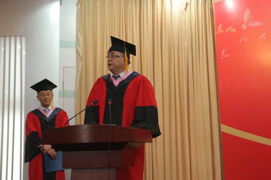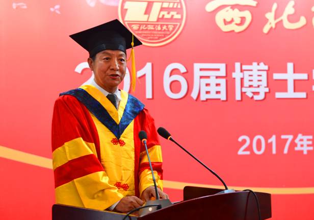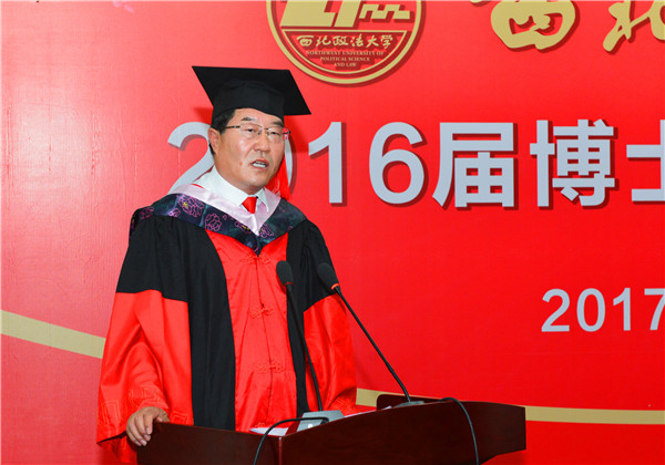 汪世荣代表导师组发言,他希望博士生牢记校训,将毕业作为新的起点,再接再励,并祝愿他们在今后的工作中取得更好的成绩。