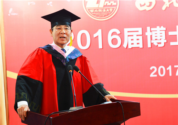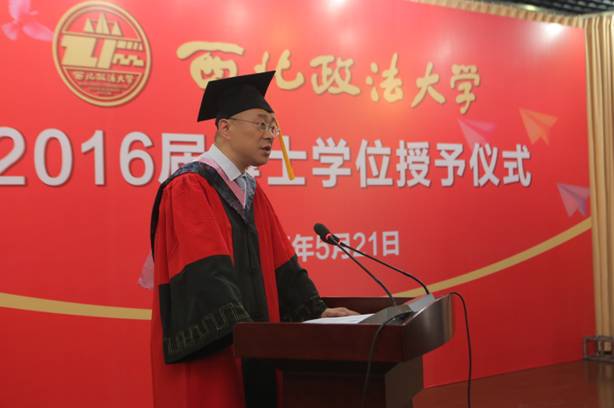 5月21日下午,十大博彩平台 2016届博士学位授予仪式在长安校区校务楼报告厅举行。校党委书记宋觉,校长、校学位评定委员会主席贾宇,校党委副书记赵健,副校长王麟,校学术委员会主任委员、资深教授赵馥洁以及校学位评定委员会委员、博士生导师、各法十大博彩平台 院长,校党政办、宣传部、科研处、教务处、学工部、校友工作办等部门负责人,在读博士生和硕士研究生代表参加仪式。陕西省人大常委会党组副书记、副主任、博士生合作导师安东,陕西警官职业十大博彩平台 院长、博士生导师杨宗科应邀参加仪式。授予仪式由校学位办主任、研究生院院长、研工部部长王健主持。