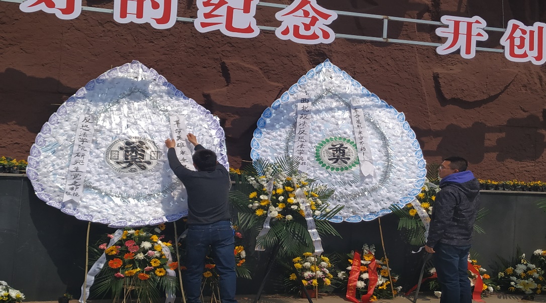 教师代表王卓、姜昱同为烈士们敬献花圈、挽联