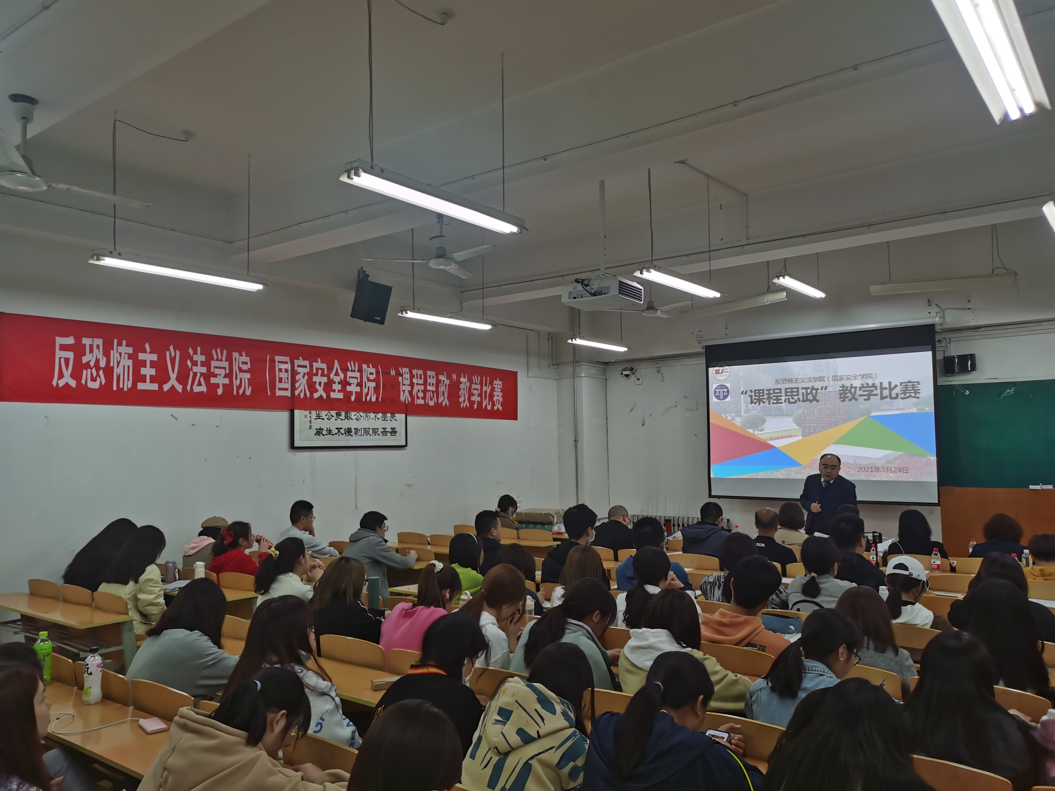 3月24日晚7点半,十大博彩平台 (十大博彩平台 )首届“课程思政”教学比赛在长安校区天平楼B107教室举行。比赛由副院长宋海彬教授主持,党委书记李政敏同志做了开场致辞,院长舒洪水教授为获奖教师颁奖并总结讲话,十大博彩平台 访问学者、新疆医科大学马克思主义十大博彩平台 殷冀锋副教授担任了本次比赛的学术点评人。十大博彩平台 青年教师代表与2021级全体学生一起全程观摩了比赛。